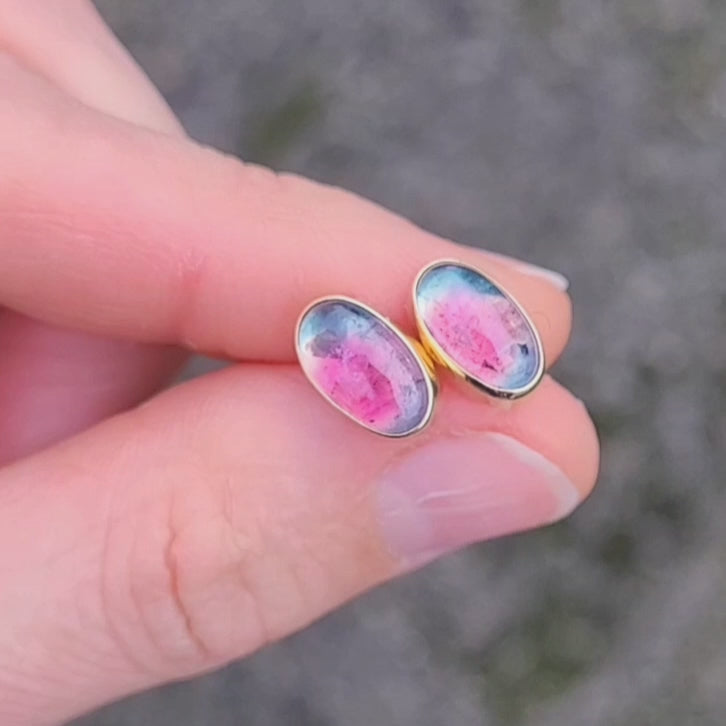 Tourmalines bicolores Or jaune 750 millièmes et argent 925