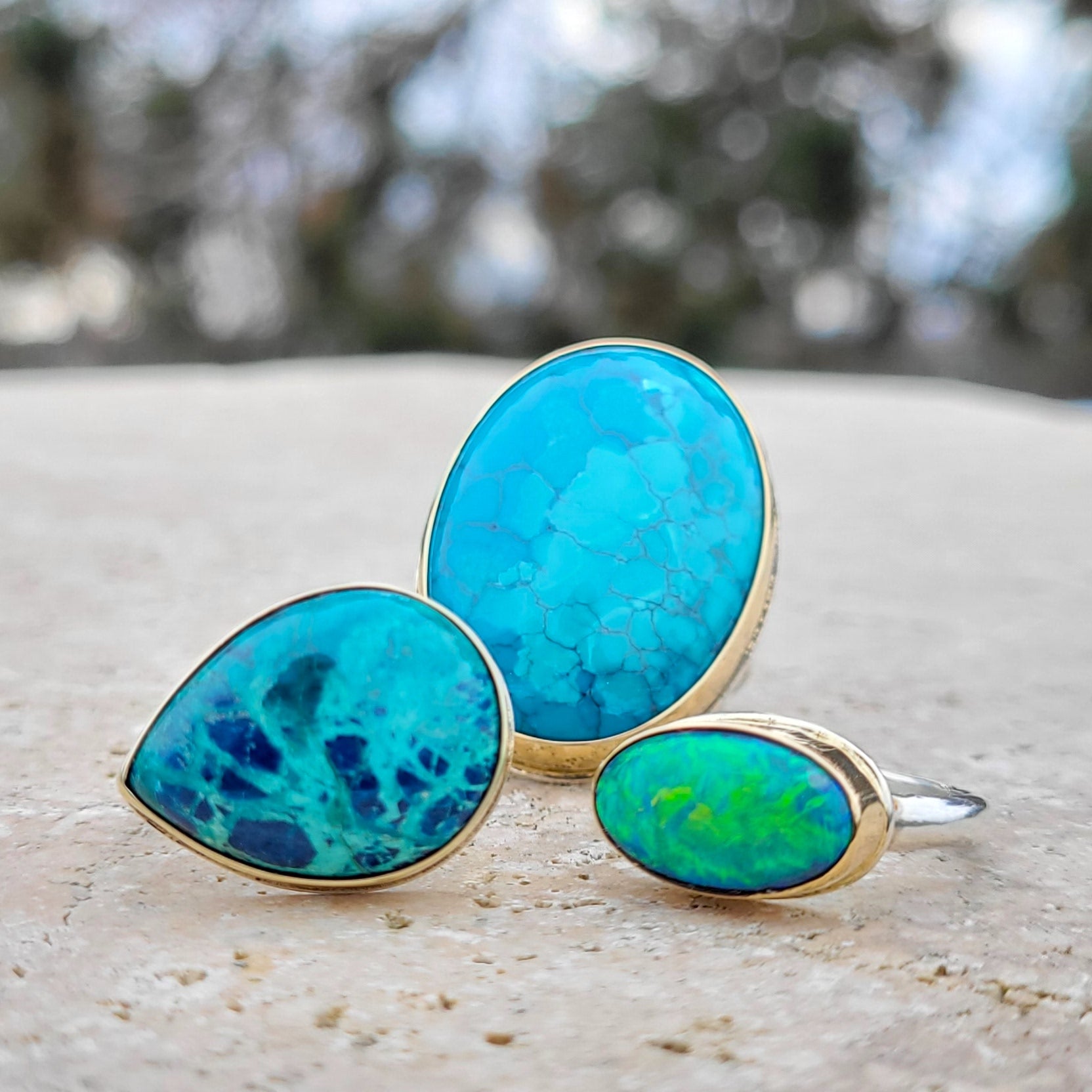 Turquoise ovale sertie en or 18 carats et montée sur un anneau en argent 925 millieme